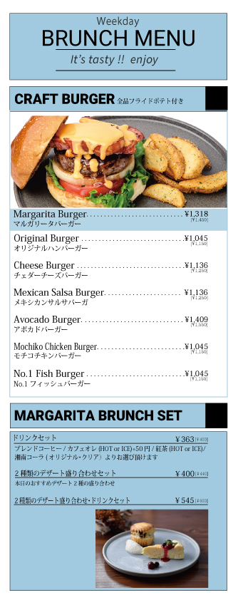 Welcome to Margarita Shonan Brunch Cafe, a charming spot nestled in Chigasaki, Kanagawa. This cafe is renowned for its thoughtfully crafted menu that effortlessly combines comfort food with artisanal touches. Begin your culinary journey with their delectable フライドポテト served with a choice of herb salt or anchovy garlic, priced at just JP¥550.
